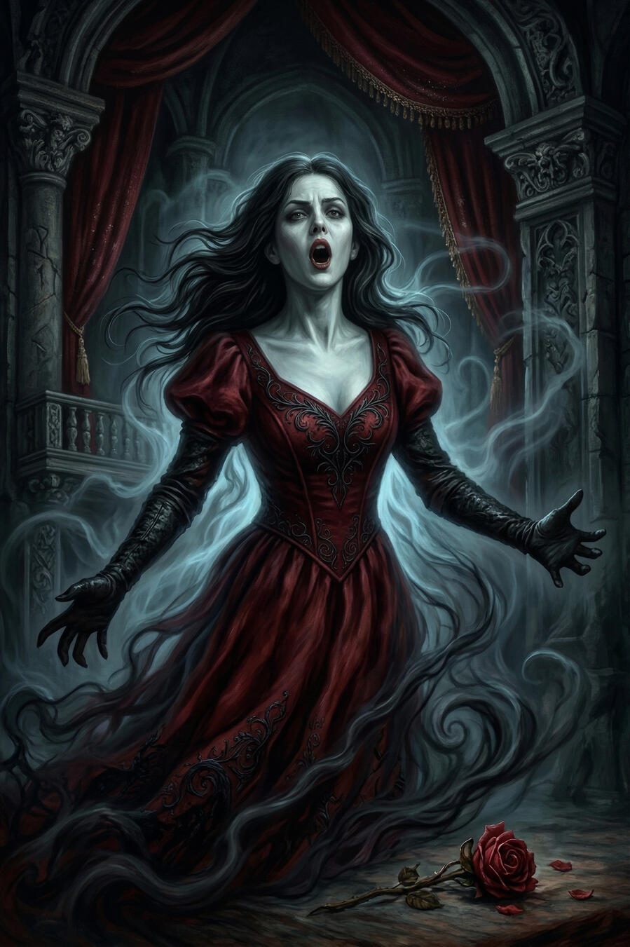 En un teatro maldito, Lora danzaba para la Muerte.